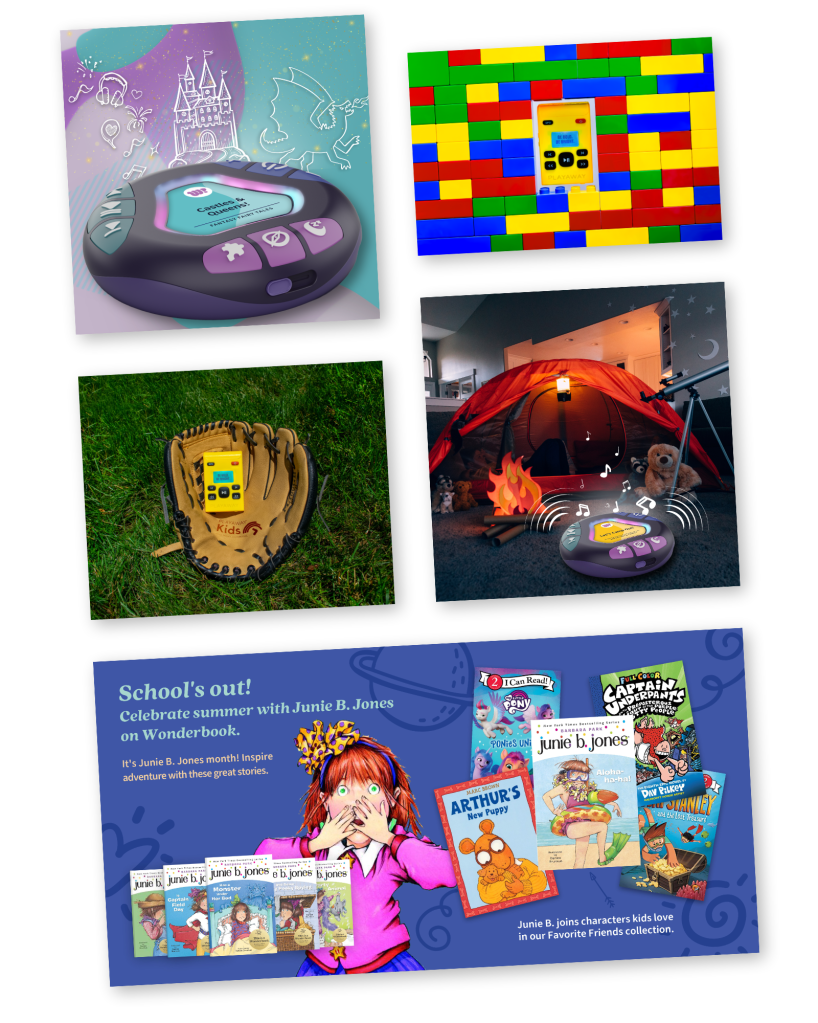 Alongside the WhaZoodle work, I also designed Instagram carousel posts for a Junie B. Jones campaign promoting new titles on the Wonderbook product. Developed in tandem with a companion email campaign, the carousel featured characters from Playaway’s “Favorite Friends” collection and used the same bright, character-driven aesthetic as the email to create a consistent cross-channel experience.
